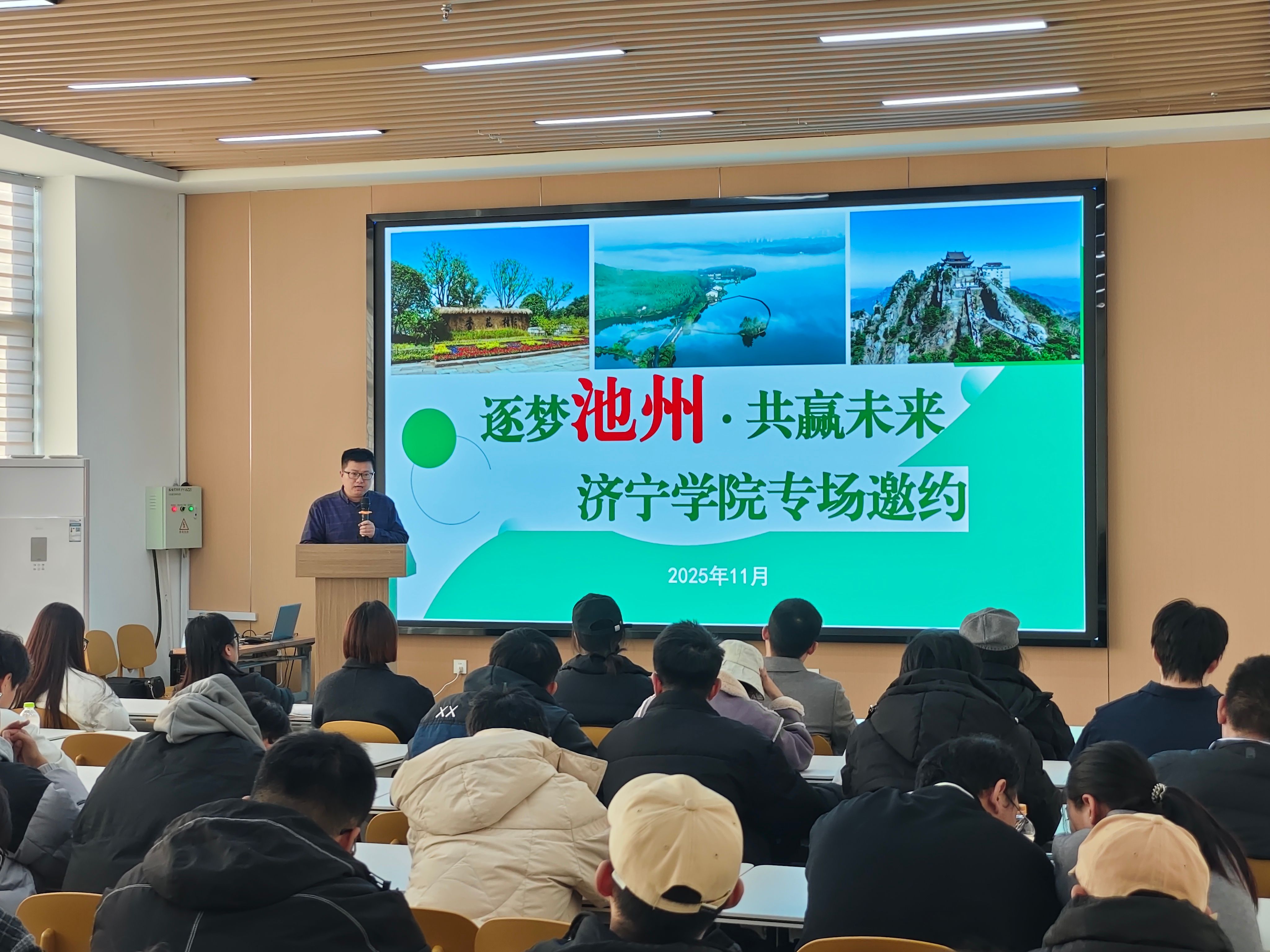 11月27日,“万马奔池”2025年池州市招才引智高校行济宁学院专场招聘会在大学生就业创业赋能中心成功举办。池州市人力资源开发指导中心综合科科长林强,学校就业指导办公室负责人员和二级学院毕业班辅导员参与活动。