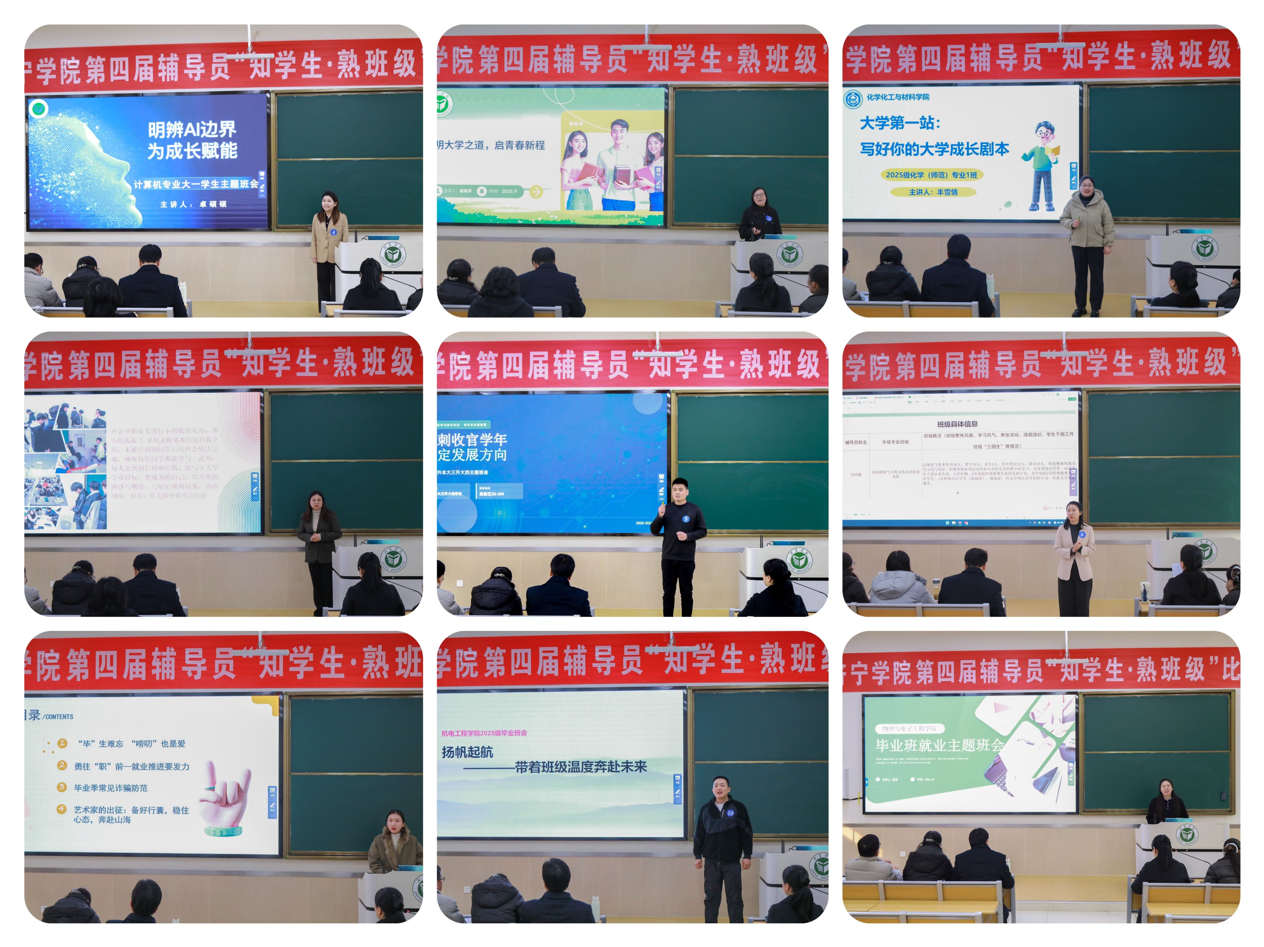 本次比赛以“知生情、熟班情、强责任、促育人”为核心,包括知学生、熟班级和主题班会三个环节,全面检验辅导员的知生熟班功底与综合育人能力。